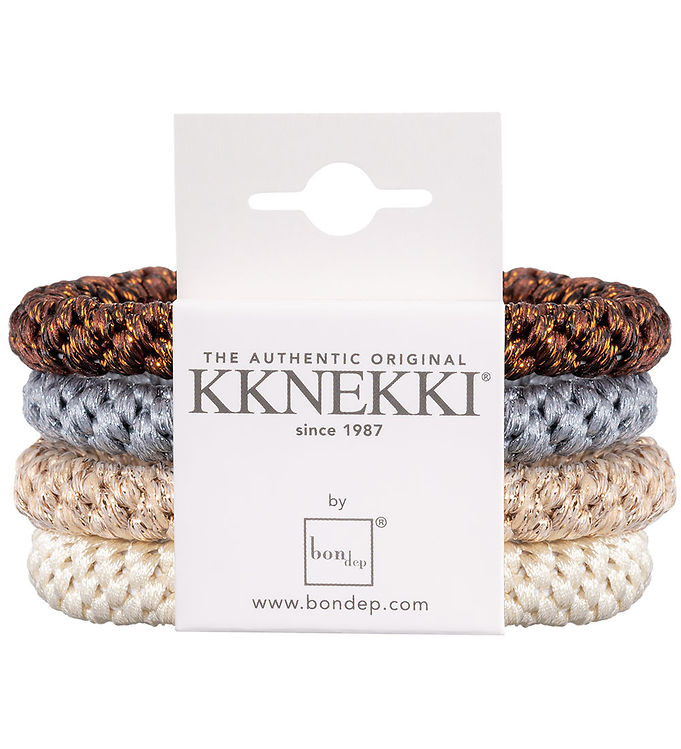 Kknekki Hårelastikker – 4-pak – Beige/Blå/Brun/Glimmer